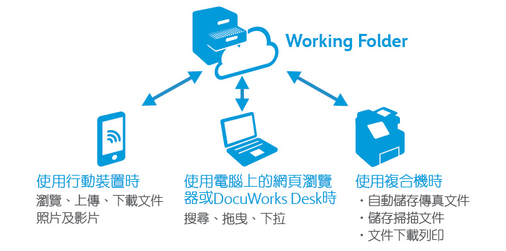 • 行動及雲(yún)端整合運用 支援Google雲(yún)端列印及AirPrint行動列印,下載Fuji XeroxPrint Utility 應用程式除列印外,更可經(jīng)由無線網(wǎng)路將書面文件掃描至行動裝置上。透過Working Folder選購功能(富士全錄雲(yún)端服務),經(jīng)安全性及權限控管,授權使用者儘管不在公司內(nèi),亦可連上網(wǎng)路,將文件掃描上傳、下載傳真、或列印檔案至辦公室內(nèi)的複合機。